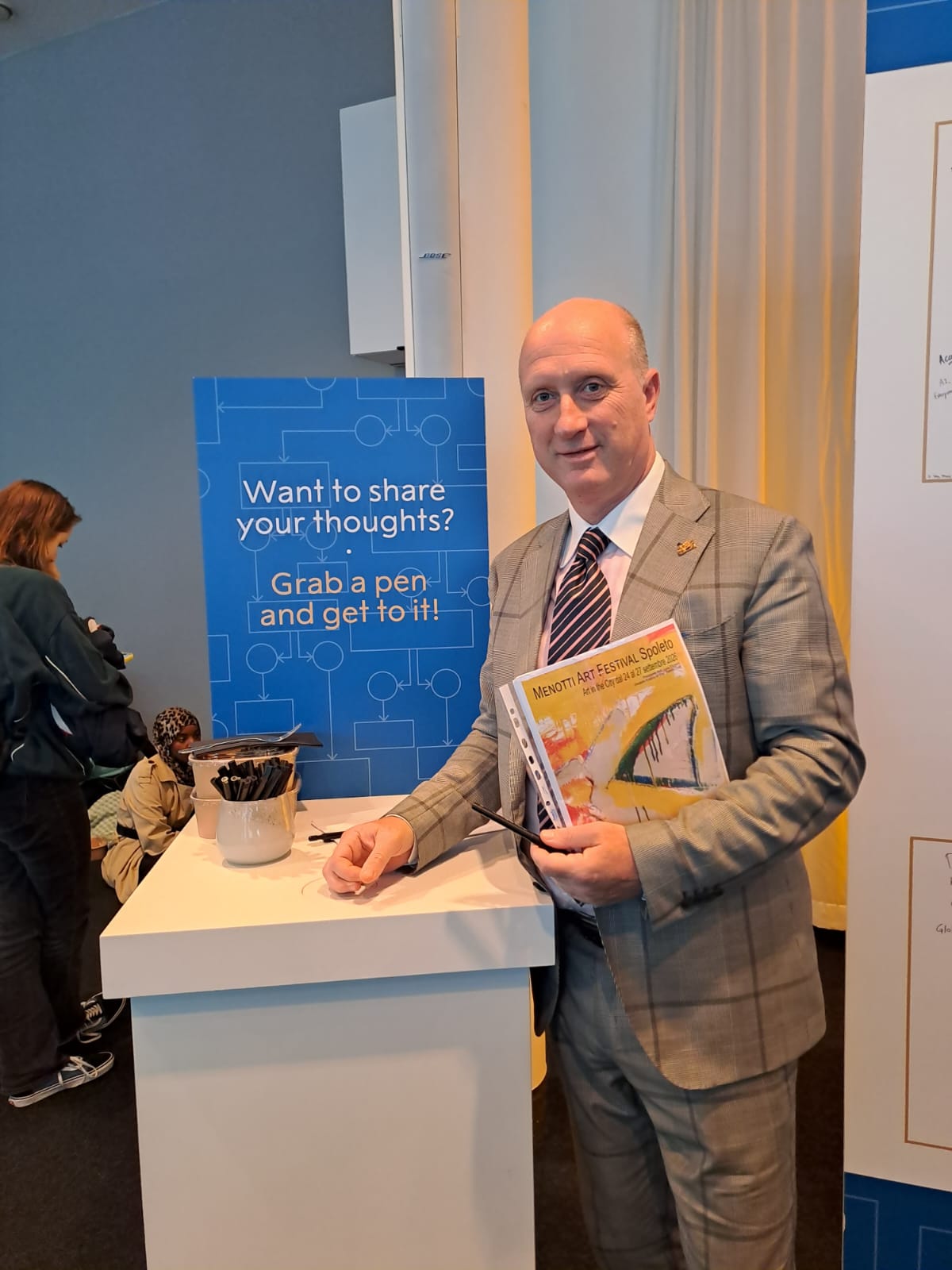 In questa occasione Il Menotti Art festival ha fatto molto squadra con Paola Biadetti, direttore della comunicazione, le vice presidenti del Premio Spoleto Sabrina Morelli e Maria Concetta Borgese che hanno seguito da remoto. Durante la pausa del seminario il prof Luca Filipponi si è intrattenuto con un gruppo di studenti e stager dell’Università di Goteborg e con alcuni ex Premi Nobel per la Chimica e per l’Economia invitandoli con successo al Premio Internazionale Comunicare l’Europa che si terrà il giorno 5 febbraio in via veneto a Roma alle ore 15 30 presso il Grand Hotel Flora Marriott ( in foto Luca Filipponi al Seminario di Goteborg-Svezia). Nella giornata del 10 dicembre , data in cui Alfred Nobel è morto a Sanremo nel 1896 il prof Luca Filipponi ha incontrato il premio Nobel per la letteratura, l’Ungherese Laszlo Krasznahorkai che è stato premiato a Stoccolma con l’assegno di spettanza da 1 milione di dollari,  invitandolo in Italia sempre a Spoleto ed alla Biennale d’arte di Venezia allo Spoleto meeting art Venezia Speciale Biennale a maggio 2026. Sempre il giorno 10 dicembre il Menotti art Festival Spoleto è stato invitato a Villa Nobel a Sanremo ( dove Alfred Nobel ha vissuto ed è morto) per la grande serata artistica e musicale in Villa organizzata dal Console di Svezia e direttore di Villa Nobel Gian Maria Leto con la presenza  del  direttore artistico degli Eventi Internazionali del Menotti Art Festival, Il soprano Angelica Cirillo.